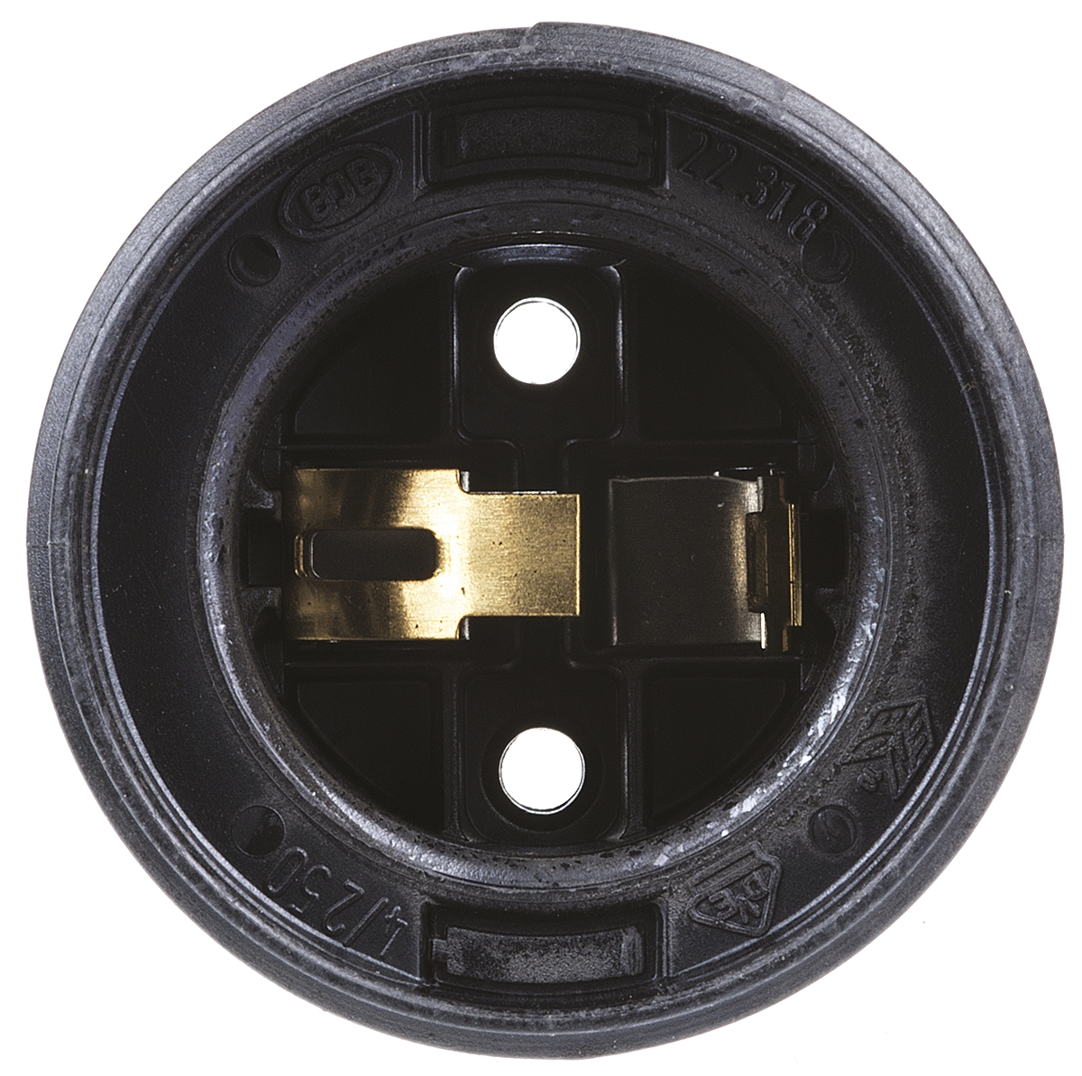 This is 2 pin Plastic ES Base GLS Lampholder E27 Screw Mount Screw Snap-Fit Fixing Push-Wire manufactured by BJB. The manufacturer part number is 22.318.3909.90. Its lamp is e27 in size . It is fixed using screw, snap-fit method . The product is made from highly stable and reliable plastic. Furthermore, the product is 40 mm wide. Its accurate length is 46 mm. It has es base . It is comprised of 2 pins. With push-wire wiring type . It has a/an gls type supported lamp . It has a screw type mount .