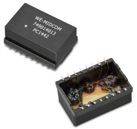 This is Surface Mount Lan Ethernet Transformer 24.55 x 18.25mm 0 → +70 °C manufactured by Wurth Elektronik. The manufacturer part number is 749014013. It has 4000v ac isolation voltage. The given dimensions of the product include 24.55 x 18.25mm. The product is available in surface mount configuration. The product has +70°c maximum temperature. While its minimum temperature is 0°c. Moreover, it has 1 output ports . Furthermore, the product is 18.25mm wide. Its accurate length is 24.55mm. The product has been well-designed with enclosed construction. It has 1:1 turns ratio . The product is designed with a solder termination. Allows -1.2db of insertion loss. The product complies with all safety standards, such as iec 60601-1, iec 60950-1, ieee 802.3.