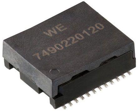 This is Surface Mount Lan Ethernet Transformer manufactured by Wurth Elektronik. The manufacturer part number is 7490220120. The product has +85°c maximum temperature. The product complies with all safety standards, such as dap black per ul 94 v-0, iee 802.3bt, ieee 802.3ab, ieee 802.3af, ieee 802.3at, ieee 802.3u. The product is available in surface mount configuration. While its minimum temperature is -40°c. Moreover, it has 1 output ports . 350ma is the secondary current rating of the product . Furthermore, the product is 14.7mm wide. Its accurate length is 18.29mm. The product has been well-designed with enclosed construction. It has 1:1 turns ratio . Allows -1db of insertion loss.
