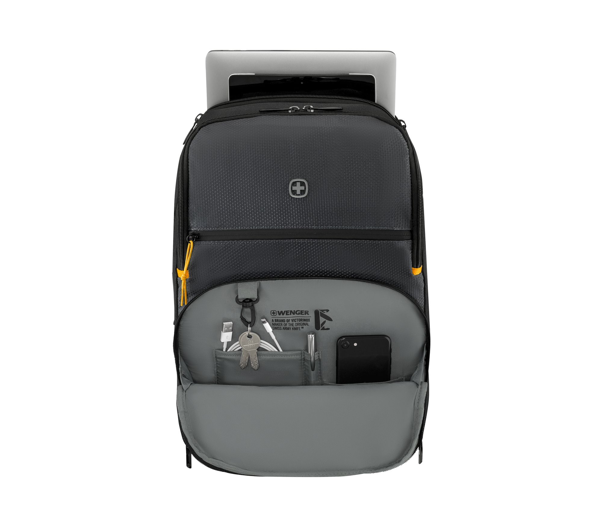 This is NEXT 16in Laptop Laptop Bag Black manufactured by Wenger. The manufacturer part number is 612570. Additionally, the product is designed with laptop bag Style. The product is 33cm wide. The typical product's weight is 0.82kg. It has a decent black colour. The product is made from highly stable and reliable 100% recycled polyester. It has a model number next. It has an external depth of 19cm. While its external height is 44cm. It has a maximum 16 in screen size . laptop case is a versatile product designed to provide user-defined applications.
