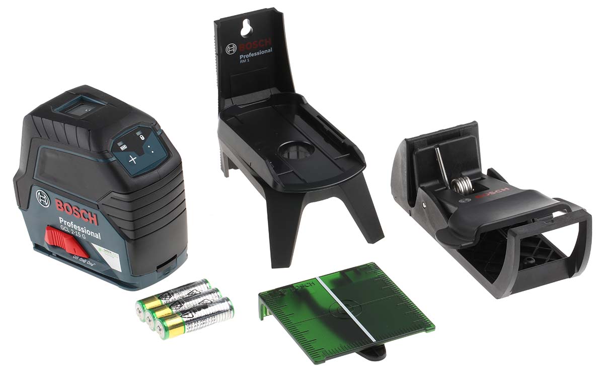 This is Laser Alignment Tool Indoor Outdoor manufactured by Bosch. The manufacturer part number is 0601066J00. The given dimensions of the product include 112 x 55 x 106mm. The typical product's weight is 490g. It is suitable for indoor & outdoor working environment . It has a standard ±0.3mm/m levelling accuracy . While it has gcl 2-15 g of model number. In addition, the height is 106mm. Furthermore, the product is 55mm wide. Its accurate length is 112mm. The Number of Laser Dots Included in the product 2 Whereas, the minimum operating temperature of the product is -10°c. It is offered with a/an green colour laser . This aa battery is comparatively much efficient than common batteries. Its laser class is class 2 . It has a maximum operating temperature of +50°c. It has a self levelling feature yes . Moreover, the product gets power from battery. Moreover, it has 2 laser lines .