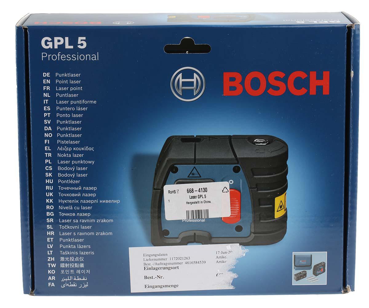 This is GPL 5 Laser Level 635nm Laser wavelength manufactured by Bosch. The manufacturer part number is 0601066200. The given dimensions of the product include 104 x 40 x 80mm. The typical product's weight is 250g. It is suitable for indoor working environment . It has a standard ±0.3mm/m levelling accuracy . While it has gpl 5 of model number. In addition, the height is 80mm. Moreover, the product gets power from battery. Furthermore, the product is 40mm wide. Its accurate length is 104mm. It has about 635nm laser wavelength . Whereas, the minimum operating temperature of the product is -10°c. It is offered with a/an red colour laser . Its laser class is class 2 . It has a maximum operating temperature of +50°c. It has a self levelling feature yes .