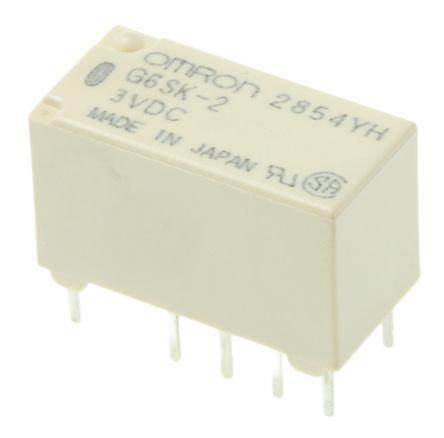 This is DPDT PCB Mount Latching Relay 2 A 3V dc For Use In Signal Applications manufactured by Omron. The manufacturer part number is G6SK-2 3DC. While it carries 220v dc of maximum DC switching voltage. The given dimensions of the product include 14.8 x 9.2 x 7.3mm. The product is available in pcb mount configuration. The product has -40 → +70°c of operating temperature range. Whereas, the minimum operating temperature of the product is -40°c. It is integrated with 2a switching current. The coil voltage of the product is 3v dc. Its accurate length is 14.8mm. In addition, the height is 9.2mm. Applications Information involves signal. The product comes in 7.3mm depth. It has a maximum AC switching voltage of 250v ac. It bears a maximum 60 w of DC switching power. It also features an AC switching power of 62.5 va. The contact is equipped with dpdt configuration. It has a maximum operating temperature of +70°c. The terminal is a through hole type. The product is made from sturdy gold plated materials.