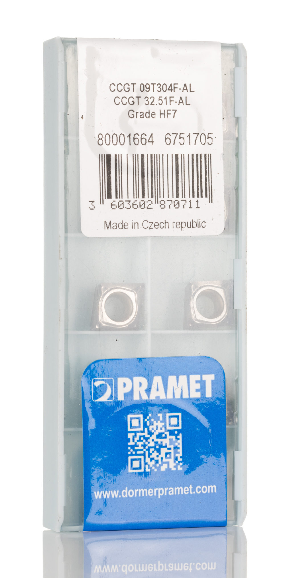 This is Lathe Insert manufactured by Pramet. The manufacturer part number is CCGT 09T304F-AL:HF7. It has a lathe insert as a lathe part .