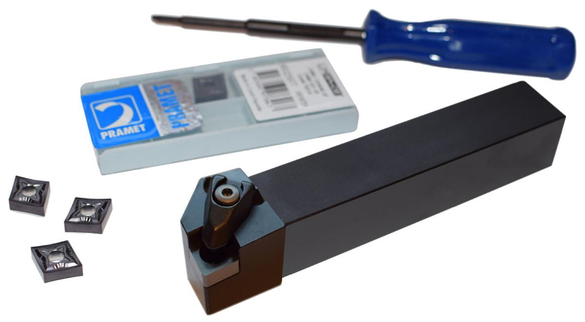 This is 11 piece Holder Insert T8330 (10) Lathe Tool Set Grade T8330 manufactured by Pramet. The manufacturer part number is RSKITDCLNR-20128-M-T8330. It has a lathe insert as a lathe part . The product is t8330, a grade of class. It is 20mm thick. It has an overall length of 125 mm. It comes in turning kit configuration. The product consists of 1 pieces.