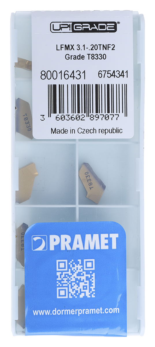 This is Parting Off Turning Tool 110 mm T8330 manufactured by Pramet. The manufacturer part number is KITXLCFN-26-3-T8330. The product is t8330, a grade of class. It has a lathe insert as a lathe part . It comes in parting off turning tool configuration. It has an overall length of 110 mm. It is 3.1mm thick.