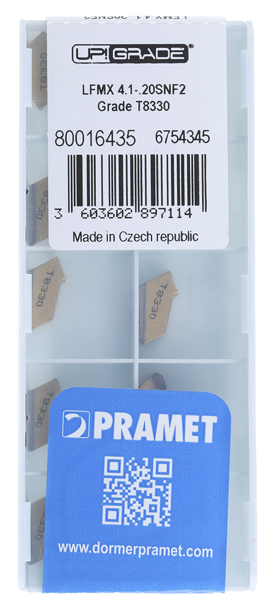 This is Parting Off Turning Tool T8330 manufactured by Pramet. The manufacturer part number is KITXLCFN-32-4-T8330. The product is t8330, a grade of class. It has a lathe insert as a lathe part . It comes in parting off turning tool configuration. It is 4.1mm thick.