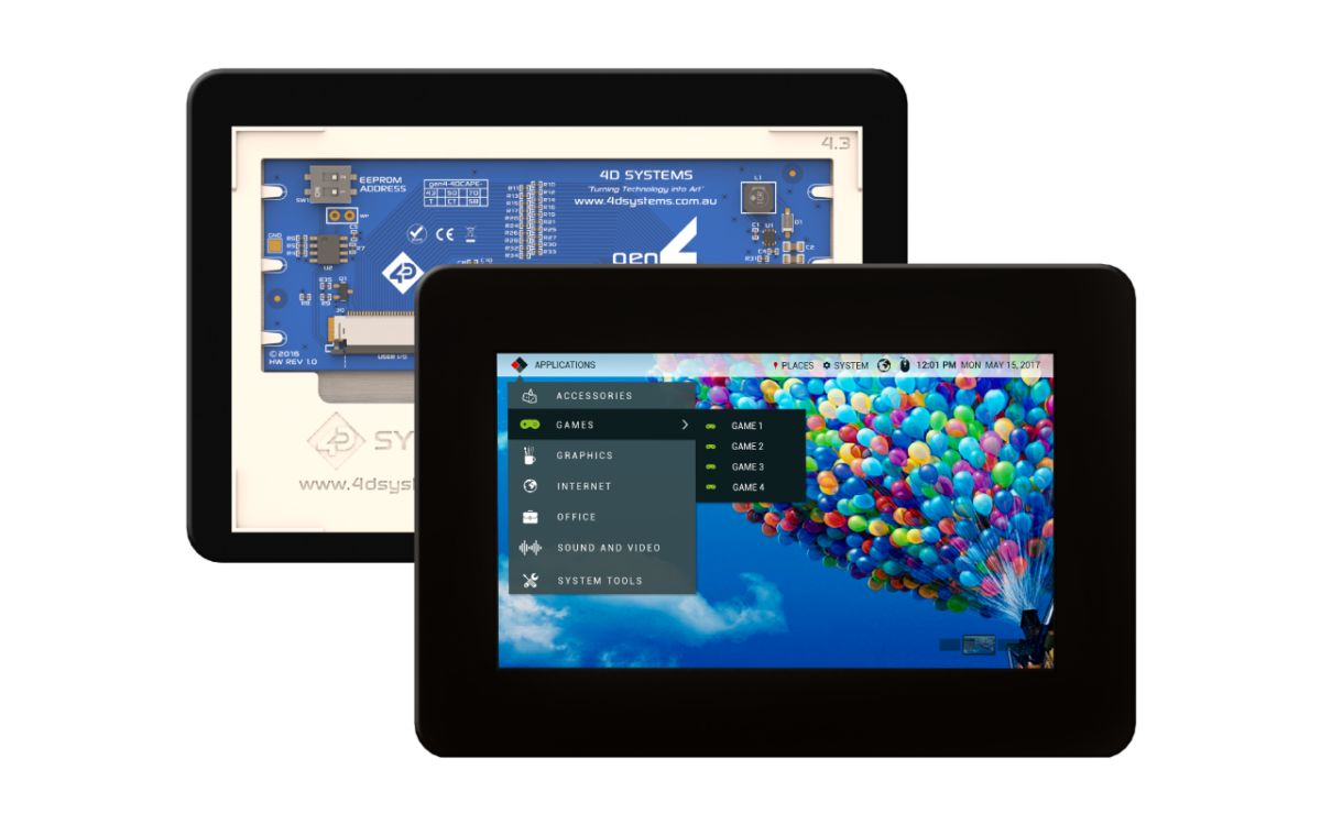 This is TFT LCD Colour Display / Touch Screen 4.3in 480 x 272pixels manufactured by 4D Systems. The manufacturer part number is gen4-4DCAPE-43CT-CLB. Features 480 x 272pixels resolution. It is a type of i2c interface. Touch screen included yes . It is designed using tft display matrix technology . It has about 4.3in diagonal display size .
