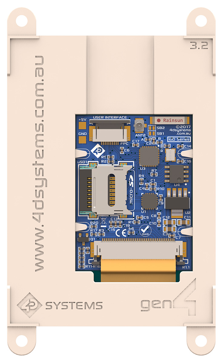 This is TFT LCD Colour Display / Touch Screen 3.2in 240 x 320pixels manufactured by 4D Systems. The manufacturer part number is gen4-IoD-32T. Its contrast ratio is 250:1 . The product has a current rating of 220ma. The given dimensions of the product include 95.7 x 57.1 x 7.5mm. It has dc input voltage. Furthermore, the product is 57.1mm wide. Features 5 v supply voltage. It has about 3.2in diagonal display size . The product complies with all safety standards, such as ce. It has approximately 49 x 65mm viewing area dimensions . Moreover, the product has a nominal 5v dc voltage rating. Moreover, it has a/an led type backlight . Additionally, it includes 65,536 colours . The product has -20 → +70°c of operating temperature range. It has a maximum operating temperature of +70°c. It is designed using tft display matrix technology . It has about 160cd/m² brightness . In addition, it has a standard 64.8mm height of viewing area . The product comes in 7.5mm depth. It is a type of uart interface. Touch screen included yes . Features 240 x 320pixels resolution. It has a 48.6mm width of viewing area . It includes a touch screen of resistive type . The product gen4, is a highly preferred choice for users. In addition, the height is 7.5mm. Whereas, the minimum operating temperature of the product is -20°c. Typically has a transmissive display mode.