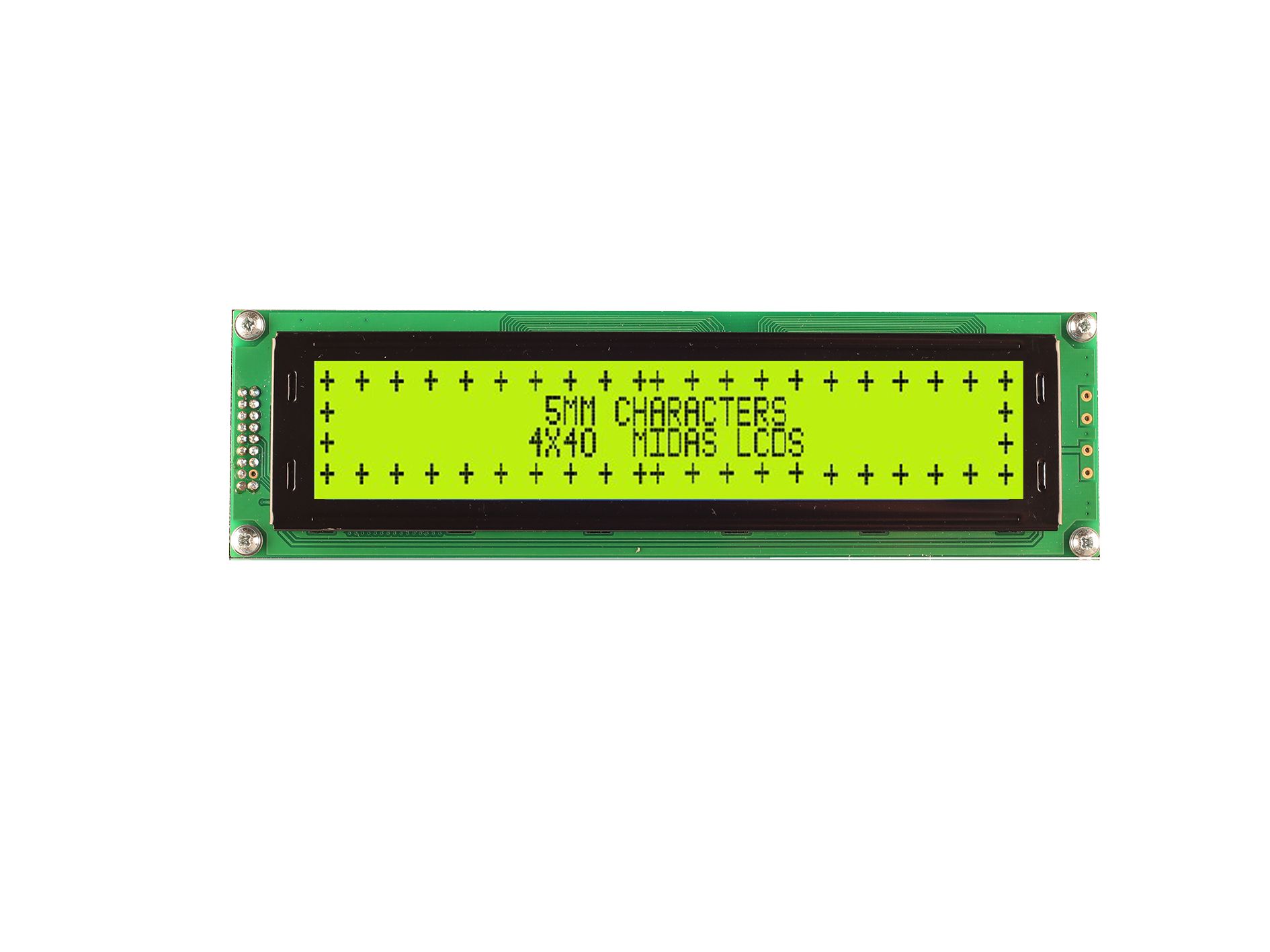 This is LCD LCD Display 4 Rows by 40 Characters manufactured by Midas. The manufacturer part number is MC44005A6W-SPTLY3.3-V2. It features a remarkable lcd display. It contains 4 rows by 40 characters matrix character . It has a standard 4.9mm character in height . Additionally, it has 40 characters per row . In addition, it has about 2.8mm character width . The product contains 4 character rows .