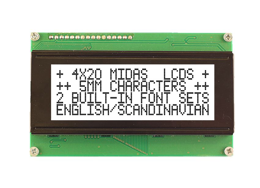 This is MC42005A6WM LCD LCD Display White 4 Rows by 20 Characters Transflective manufactured by Midas. The manufacturer part number is MC42005A6WM-FPTLW-V2. It is designed with an attractive white colour background . It features a remarkable alphanumeric display. The product mc42005a6wm, is a highly preferred choice for users. It contains 4 rows by 20 characters matrix character . It has a standard 5mm character in height . Additionally, it has 20 characters per row . Typically has a transflective display mode. The product contains 4 character rows .