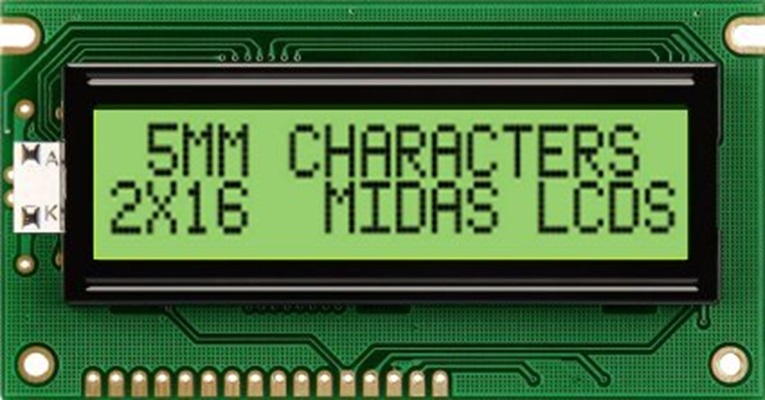 This is MC21605AB6W Alphanumeric LCD Display Black on Yellow/Green 2 Rows by 16 Characters manufactured by Midas. The manufacturer part number is MC21605AB6W-GPTLY-V2. It is designed with an attractive yellow/green colour background . It features a remarkable alphanumeric display. It is designed with a/an black colour illumination . The product mc21605ab6w, is a highly preferred choice for users. It contains 2 rows by 16 characters matrix character . It has a standard 5.2mm character in height . Additionally, it has 16 characters per row . In addition, it has about 3mm character width . Typically has a transflective display mode. The product contains 2 character rows .