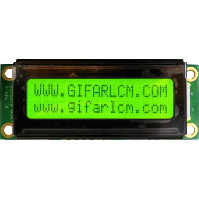 This is manufactured by Gi Far technology Co., Ltd. The manufacturer part number is GFC1602GB-YPAEJS. Its character size is 3.55mm h x 1.70mm w. It is assigned with possible HTSUS value of 8531.20.0020. The product is rohs compliant. It has a given 5 x 8 dots character format. It has a typical 16 x 2 display format. The product has -20°c ~ 70°c operating temperature range. The product has integrated with a st7066u-0a, a versatile and functional controller. Outline Specifications include in (L x W x H) - 53.00mm x 20.00mm x 9.50mm. In addition, it is reach unaffected. A bespoke product is parallel interface. The gi far technology co., ltd's product offers user-desired applications. Provides a 35.85mm l x 9.80mm w viewing area. Its typical moisture sensitivity level is not applicable. The text is provided in black colour. The product has a classic yellow/green background colour. It features a remarkable stn - y/g display. Consists of 32.0 characters. In addition, tape & box (tb) is the available packaging type of the product. It has optimum voltage supply of 5v. Typically has a transflective display mode. Has a dot size of 0.30mm w x 0.40mm h. Backlight Options - led - yellow/green. The product is designated with the ear99 code number.