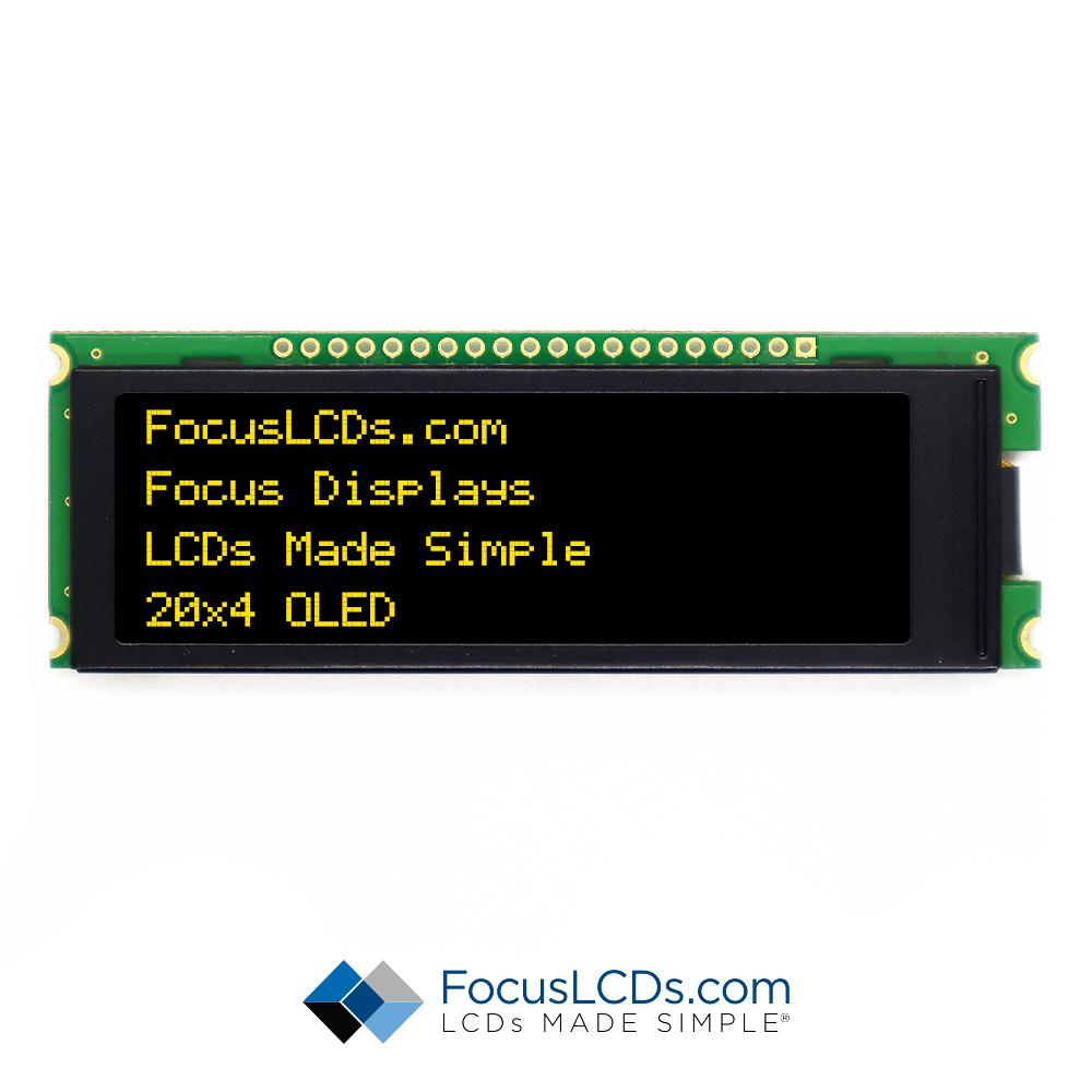 This is manufactured by Focus LCDs. The manufacturer part number is O204B-CY-YS5. Its character size is 4.77mm h x 2.97mm w. It is assigned with possible HTSUS value of 8531.20.0020. The product is rohs compliant. It has a given 5 x 8 dots character format. It has a typical 20 x 4 display format. The product has -40°c ~ 85°c operating temperature range. The product has integrated with a us2066, a versatile and functional controller. In addition, it is reach unaffected. A bespoke product is 4/8-bit, i2c, parallel interface. It is shipped in tape & box (tb) package . Provides a 72.50mm l x 22.90mm w viewing area. The text is provided in yellow colour. The product has a classic black background colour. It features a remarkable oled display. Consists of 80 characters. Outline Specifications include in (L x W x H) - 92.00mm x 31.50mm x 5.00mm. It has optimum voltage supply of 2.4v ~ 5.5v. Typically has a reflective display mode. Has a dot size of 0.57mm w x 0.57mm h. The product is designated with the ear99 code number.