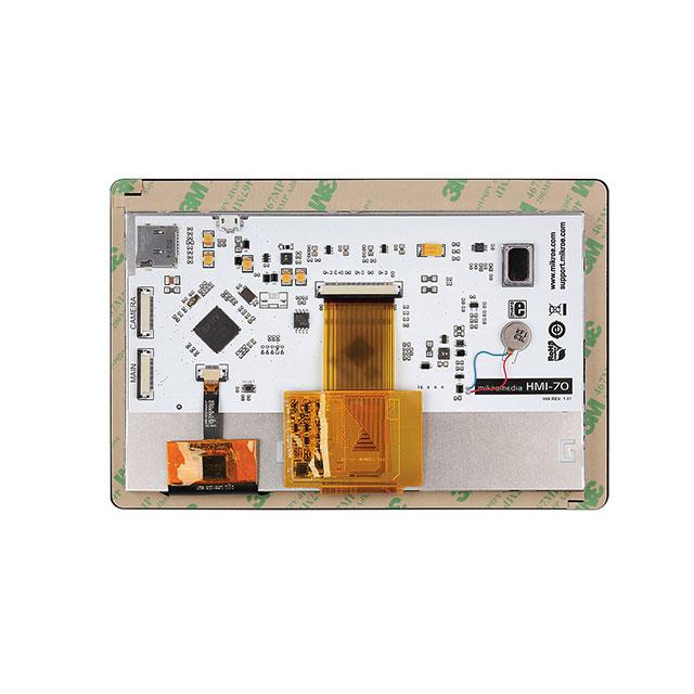 This is manufactured by MikroElektronika. The manufacturer part number is MIKROE-2291. It has a 154.08mm width of viewing area . It has about 350cd/m² brightness . It includes a touch screen of capacitive type . The product mikromedia hmi, is a highly preferred choice for users. Typically has a transmissive display mode. It is designed using tft display matrix technology . In addition, it has a standard 85.92mm height of viewing area . Moreover, it has a/an led type backlight . It has approximately 154 x 86mm viewing area dimensions . Features 5 v supply voltage. Touch screen included yes . It has about 7in diagonal display size . Features 800 x 480pixels resolution. It has a/an svga type graphics array . It is assigned with possible HTSUS value of 8524.91.1000. The product is rohs3 compliant. Touchscreen Included - capacitive . In addition, it is reach unaffected. Features 800 x 480 (wvga) dot fixels. The dot pitch is 0.05mm w x 0.14mm h. It is shipped in bulk package . Provides a 154.08mm w x 85.92mm h viewing area. Its typical moisture sensitivity level is 1 (unlimited). Has a 7" (177.80mm) diagonal screen size. The product is designated with the 3a991a2 code number.