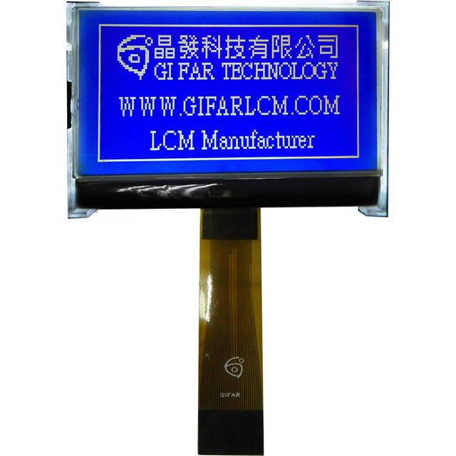 This is manufactured by Gi Far technology Co., Ltd. The manufacturer part number is GFG144064A-BNFE. It is assigned with possible HTSUS value of 8531.20.0020. The product is rohs compliant. The product has integrated with a st7066u-0a, a versatile and functional controller. A bespoke product is parallel interface. The dot pitch is 0.60mm w x 0.60mm h. It is shipped in tape & box (tb) package . Provides a 76.00mm l x 25.20mm w viewing area. Its typical moisture sensitivity level is not applicable. The product has a classic yellow/green background colour. It features a remarkable stn - super-twisted nematic display. Typically has a transflective display mode. Has a dot size of 0.55mm w x 0.55mm h. Backlight Options - led - yellow/green. The product is designated with the ear99 code number.