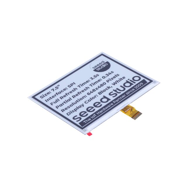 This is manufactured by Seeed. The manufacturer part number is 104990858. It is assigned with possible HTSUS value of 8524.19.0000. It has classic black graphics. The product has integrated with a stm32, a versatile and functional controller. A bespoke product is spi interface. Features 648 x 480 dot fixels. The seeed's product offers user-desired applications. The product has a classic white background colour. The dot pitch is 0.18mm w x 0.18mm h. Provides a 118.78mm w x 88.22mm h viewing area. Its typical moisture sensitivity level is 1 (unlimited). It has a long 16 weeks standard lead time. It features a remarkable monochrome display. Has a 5.83" (148.08mm) diagonal screen size. In addition, box is the available packaging type of the product. Typically has a reflective display mode. Backlight Options - without backlight. The product is designated with the ear99 code number.