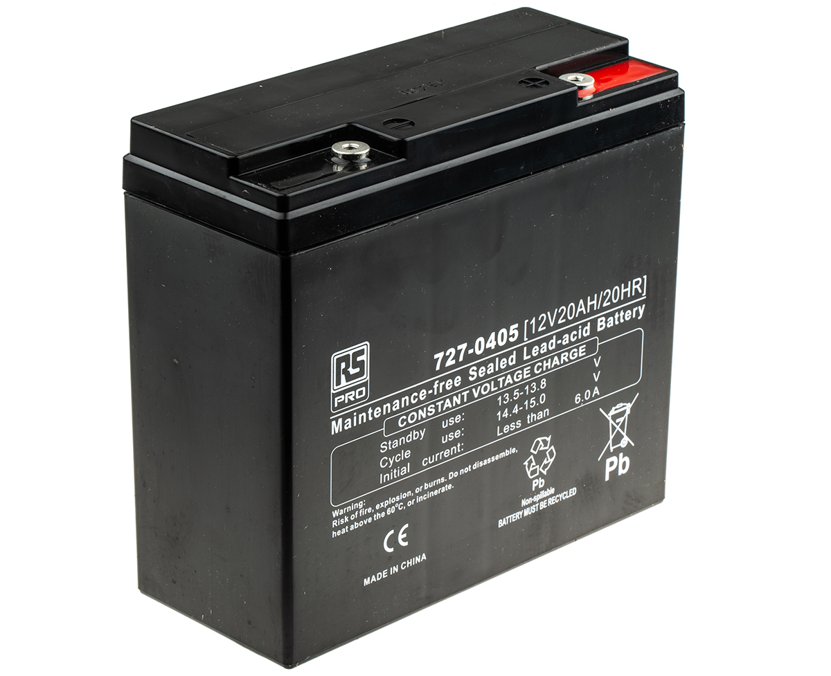 This is RSC20-12 12V Lead Acid Battery 20Ah manufactured by RS Pro. The manufacturer part number is 727-0405. It has a 3 to 5 years eurobat classification . It is specifically designed for high rate application no . The module has the capacity of 20ah. The given dimensions of the product include 181.5 x 77 x 166mm. The typical product's weight is 6.9kg. The product has -20 → +55°c of operating temperature range. Whereas, it has a flame resistant feature no . Applications Information involves cyclic. The product has been well-designed with agm construction. Moreover, it is designed for cyclic application yes . Whereas, the minimum operating temperature of the product is - 20°c. The nominal voltage of the product is 12v. It has a/an lead acid chemistry . It has a maximum operating temperature of + 55°c. The terminal is a t12 type. Its brand range is rs pro .