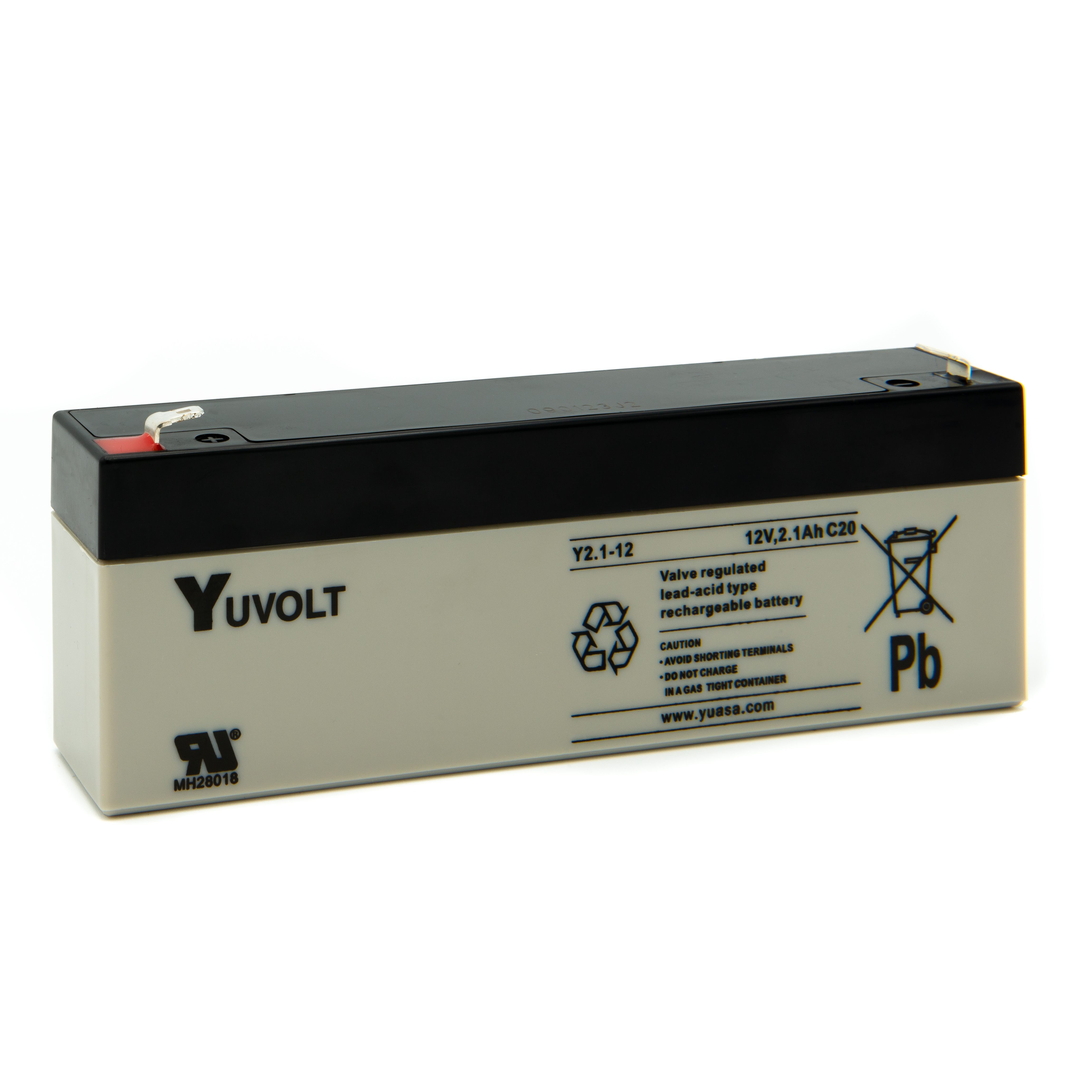 This is 12V Lead Acid Battery 2.1Ah manufactured by Yuasa. The manufacturer part number is Y2.1-12. It has a 3 to 5 years eurobat classification . It is specifically designed for high rate application no . The module has the capacity of 2.1ah. The given dimensions of the product include 64 x 178 x 34mm. The typical product's weight is 900g. The product has -20 → +60°c of operating temperature range. Whereas, it has a flame resistant feature no . Applications Information involves stand by use. The product has been well-designed with vrla agm construction. Moreover, it is designed for cyclic application no . Whereas, the minimum operating temperature of the product is -20°c. The nominal voltage of the product is 12v. It has a/an lead acid chemistry . It has a maximum operating temperature of +60°c. The terminal is a faston 4.8mm type. Its brand range is yuasa yuvolt .
