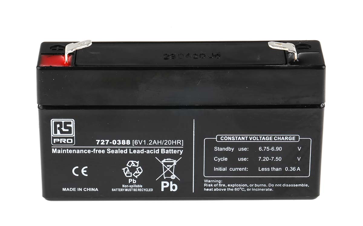 This is 6V Lead Acid Battery 1.2Ah manufactured by RS Pro. The manufacturer part number is 727-0388. It has a 3 to 5 years eurobat classification . It is specifically designed for high rate application no . The module has the capacity of 1.2ah. The given dimensions of the product include 97 x 24 x 51.5mm. The typical product's weight is 290g. The product has -20 → +50°c of operating temperature range. Whereas, it has a flame resistant feature no . Applications Information involves stand by use. The product has been well-designed with agm construction. Moreover, it is designed for cyclic application no . Whereas, the minimum operating temperature of the product is - 20°c. The nominal voltage of the product is 6v. It has a/an lead acid chemistry . It has a maximum operating temperature of + 50°c. The terminal is a t1 type. Its brand range is rs pro .