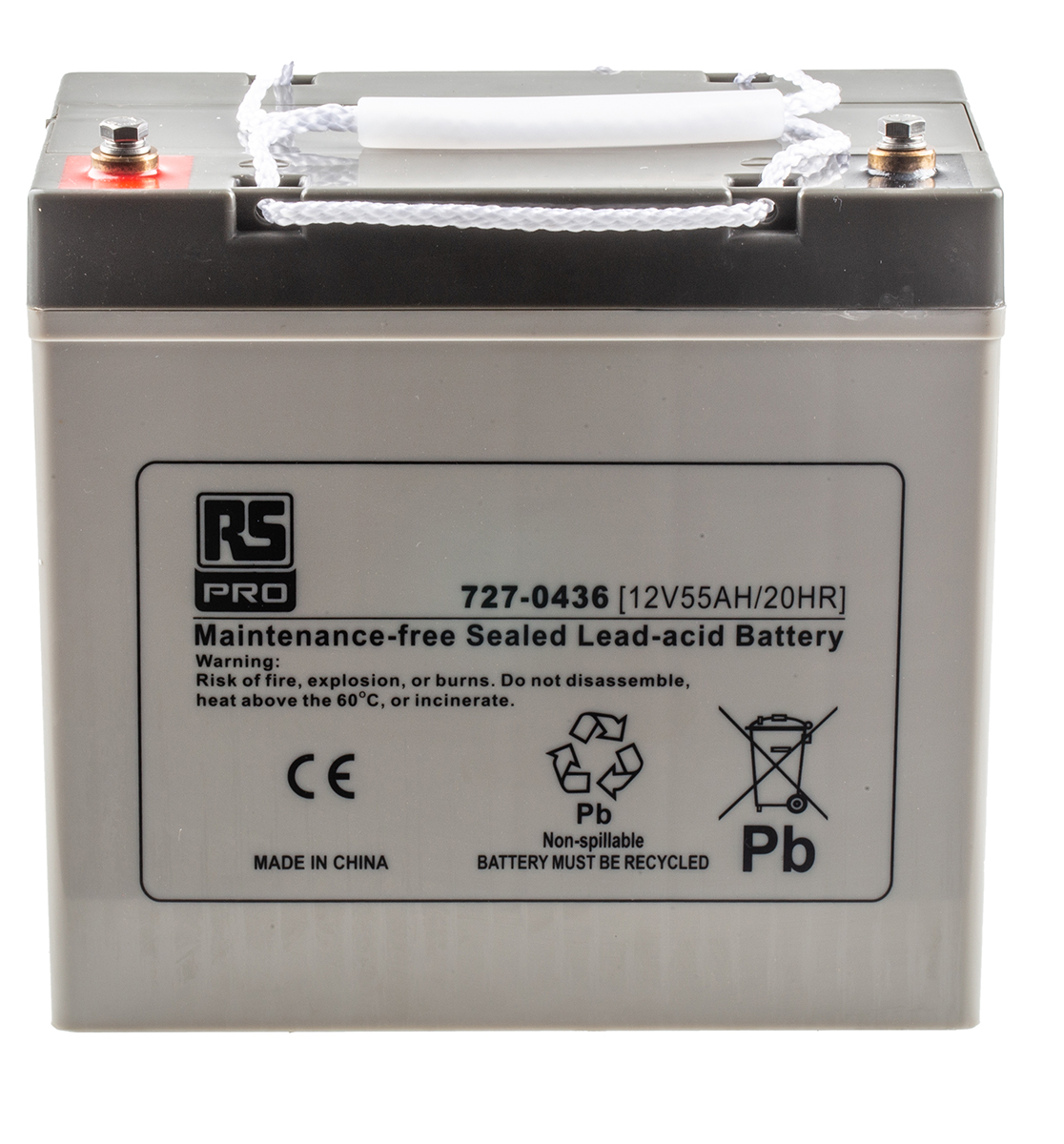 The 727-0436 is a rugged 12V, 55Ah lead-acid battery from RS Pro, engineered for dependable cyclic use in demanding environments. With a compact footprint of 229 × 138 × 210mm and a 17.7 kg weight, it delivers stable power across a broad temperature range. With AGM construction and Eurobat classification up to 10–12 years, this battery is well-suited for standby backup, solar storage, telecom, and industrial systems requiring trustworthy, durable energy storage.