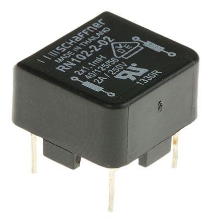 This is 1.1 mH -30 → +50% Current Compensated Choke 2A Idc 70mΩ Rdc RN manufactured by Schaffner. The manufacturer part number is RN102-2-02. It allows up to 70mω maximum DC resistance. The given dimensions of the product include 14.3 x 14.3 x 9.3mm. The product is available in radial configuration. While it carries 2a of maximum DC current. The product rn, is a highly preferred choice for users. Whereas, the minimum operating temperature of the product is -40°c. Its accurate length is 14.3mm. In addition, the height is 9.3mm. The product comes in 14.3mm depth. The product has a 1.1 mh inductance value. The terminal is a pc pin type. The lead features 10mm pitch. It has a maximum operating temperature of +125°c. It features -30 → +50% of tolerance value. It has 3d cad model CAD drawing .