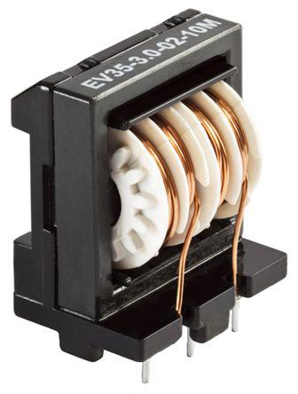 This is 10 mH ±30% Common Mode Choke Max SRF:400Hz 3A Idc 72mΩ Rdc EV/EH manufactured by Schaffner. The manufacturer part number is EV35-3.0-02-10M. It allows up to 72mω maximum DC resistance. The given dimensions of the product include 26 x 24.5 x 42.7mm. Furthermore, the lead has 1.2mm diameter. While it carries 3a of maximum DC current. The product ev/eh, is a highly preferred choice for users. Whereas, the minimum operating temperature of the product is -25°c. Its accurate length is 26mm. In addition, the height is 42.7mm. The product comes in 24.5mm depth. The product has a 10 mh inductance value. It provides 400hz of maximum self-resonant frequency. The product is available in through hole configuration. The lead features 15 mm, 21 mm pitch. It has a maximum operating temperature of +100°c. It features ±30% of tolerance value. The terminal is a radial leaded type.