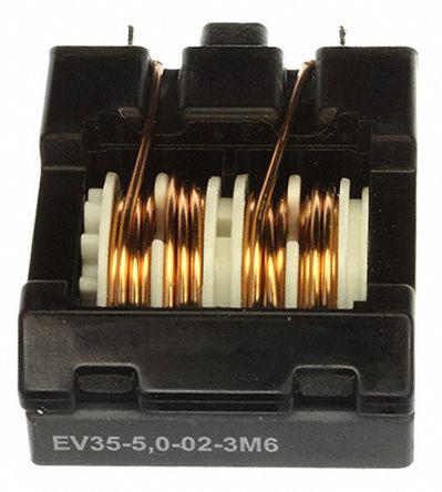 This is 3.6 mH ±30% Common Mode Choke Max SRF:400Hz 5A Idc 33mΩ Rdc EV/EH manufactured by Schaffner. The manufacturer part number is EV35-5.0-02-3M6. It allows up to 33mω maximum DC resistance. The given dimensions of the product include 26 x 24.5 x 42.7mm. Furthermore, the lead has 1.2mm diameter. While it carries 5a of maximum DC current. The product ev/eh, is a highly preferred choice for users. Whereas, the minimum operating temperature of the product is -25°c. Its accurate length is 26mm. In addition, the height is 42.7mm. The product comes in 24.5mm depth. The product has a 3.6 mh inductance value. It provides 400hz of maximum self-resonant frequency. The product is available in through hole configuration. The lead features 15 mm, 21 mm pitch. It has a maximum operating temperature of +100°c. It features ±30% of tolerance value. The terminal is a radial leaded type.