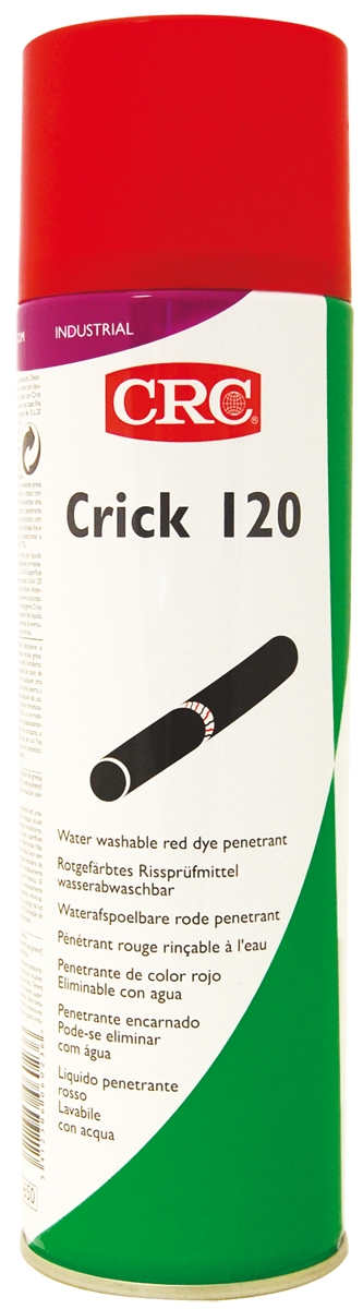 This is Leak & Flaw Detector Spray Penetrant 500mL Aerosol manufactured by CRC. The manufacturer part number is 30205. It is assigned with a trade name of crick 120. The product's category is aerosol . In addition, it has a penetrant of flaw detection system embedded . It has a 500ml pack size .
