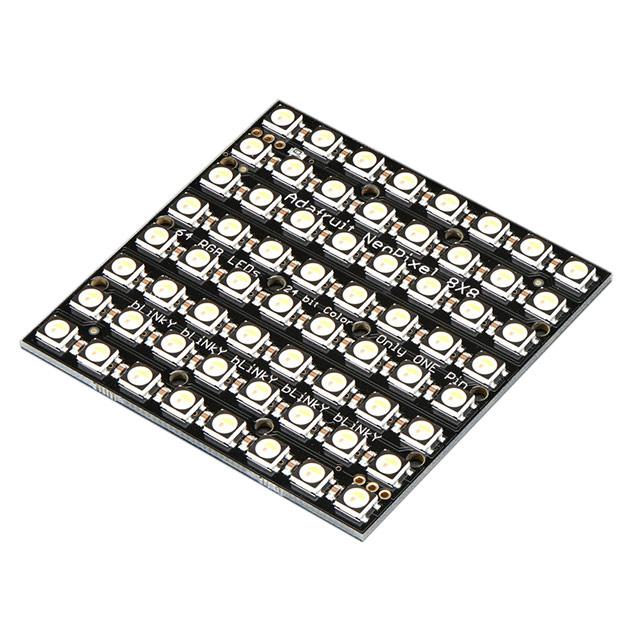 This is manufactured by Adafruit Industries LLC. The manufacturer part number is 2870. It is assigned with possible HTSUS value of 8541.41.0000. The product is rohs3 compliant. The product has integrated with high-quality sk6812 (5050) LEDs. In addition, it is vendor undefined. A bespoke product is serial (shift register) interface. The product is available in matrix configuration. It is shipped in bulk package . The product's diameters include 71.0mm l x 71.0mm w. It consists of 64 (8 x 8) LEDs. It has a long 12 weeks standard lead time. Its typical moisture sensitivity level is 1 (unlimited). The product is available in user defined configuration. It has a classic red, green, blue, white (rgbw) colour. The product neopixel, is a highly preferred choice for users. The product is designated with the ear99 code number.