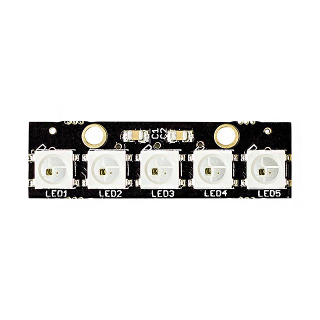 This is manufactured by Kitronik Ltd.. The manufacturer part number is 35129. It is assigned with possible HTSUS value of 8541.41.0000. The product is rohs3 compliant. The product has integrated with high-quality ws2812 LEDs. A bespoke product is serial (shift register) interface. The product is available in module configuration. It is shipped in bag package . The product's diameters include 34.30mm l x 10.20mm w. It consists of 5 LEDs. It has a long 4 weeks standard lead time. Its typical moisture sensitivity level is 1 (unlimited). The product is available in surface mount configuration. It has a classic red, green, blue (rgb) colour. The product is designated with the ear99 code number.