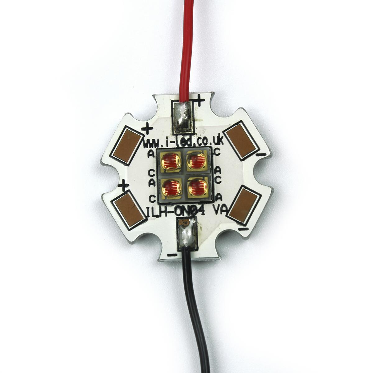 This is ILS OSLON 80 4+ PowerStar Circular LED Array 4 Red LEDs manufactured by Intelligent LED Solutions. The manufacturer part number is ILH-ON04-FRED-SC211-WIR200.. The product has a current rating of 1a. Moreover, the product has a nominal 6.4 → 9.2v voltage rating. The product oslon 80 4+ powerstar, is a highly preferred choice for users. Its base is made up of aluminium material . It has a flying leads type connection . It consists of 4 LEDs. The LED has a classic red colours. It contains a typical 804 mw luminous flux . Its outer diameter is 20mm.