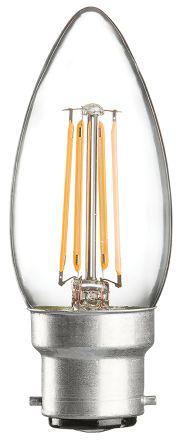 This is B22d GLS LED Candle Bulb 4 W(40W) Warm White manufactured by Knightsbridge. The manufacturer part number is CL4BCC. Its diameter is 35mm. It includes a/an candle shape lamp . This integrates a colour temperature of 2700k. Moreover, the product has a nominal 230 v voltage rating. Features luminosity up to 420 lm. This product carries 4 w. In addition, it has about 40w incandescent equivalent wattage . Furthermore, 360° is the viewing angle of the product. It is rated with a++ EU energy efficiency. The lamp base is b22. Its accurate length is 92 mm. It is dimmable no . It is a type of led filament lamp. Adding to this, it has a long life span for about 20000h. The tone of the colour includes warm white.