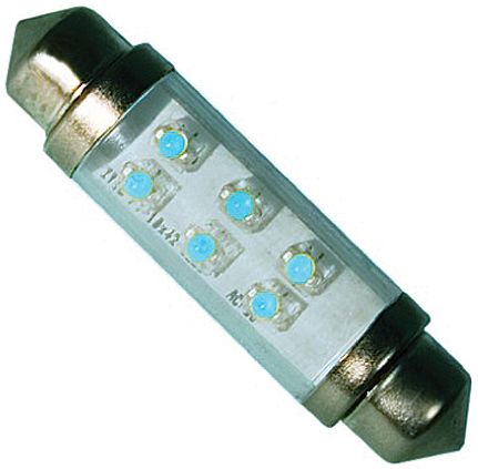 This is LED Car Bulb 43 mm Blue 24 V dc 12 mA 10.5mm 2 lm manufactured by JKL Components. The manufacturer part number is LE-0603-04B. Its diameter is 10.5mm. It includes a/an festoon shape lamp . The product has a current rating of 12 ma. Moreover, the product has a nominal 24 v dc voltage rating. Features luminosity up to 2 lm. Its accurate length is 43 mm. The lens has an adorable clear colour. It is a type of led car bulb lamp. The tone of the colour includes blue.
