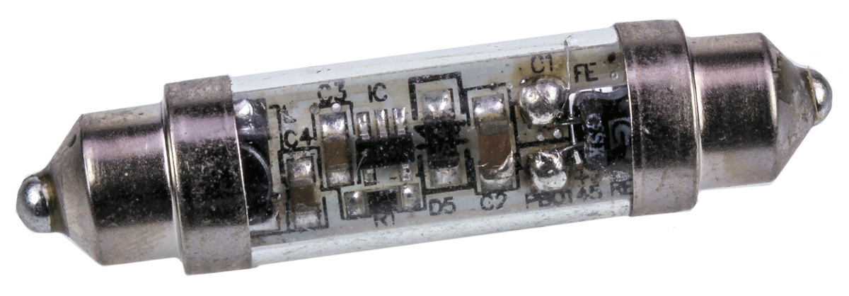 This is LED Car Bulb 10.2 (dia) x 43 (h) mm 43 mm Warm White 12 V ac/dc 42 mA 10.2mm 36 lm manufactured by JKL Components. The manufacturer part number is LE-0909-11WW. Its diameter is 10.2mm. It includes a/an festoon shape lamp . The product has a current rating of 42 ma. Moreover, the product has a nominal 12 v voltage rating. Features luminosity up to 36 lm. Its accurate length is 43 mm. The lens has an adorable clear colour. It is a type of led car bulb lamp. The tone of the colour includes warm white.
