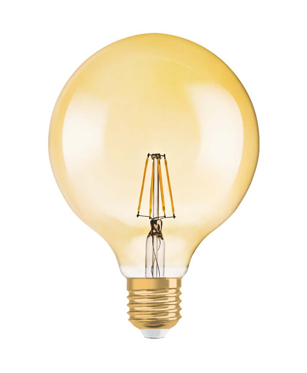 This is 1906LEDGLOBE 7W/824 230VFILGDE27 manufactured by Osram. The manufacturer part number is 4058075809406. This integrates a colour temperature of 2500k. It includes a/an globe shape lamp . Features luminosity up to 725 lm. This product carries 7 w. The lamp base is e27. It is a type of led filament lamp.