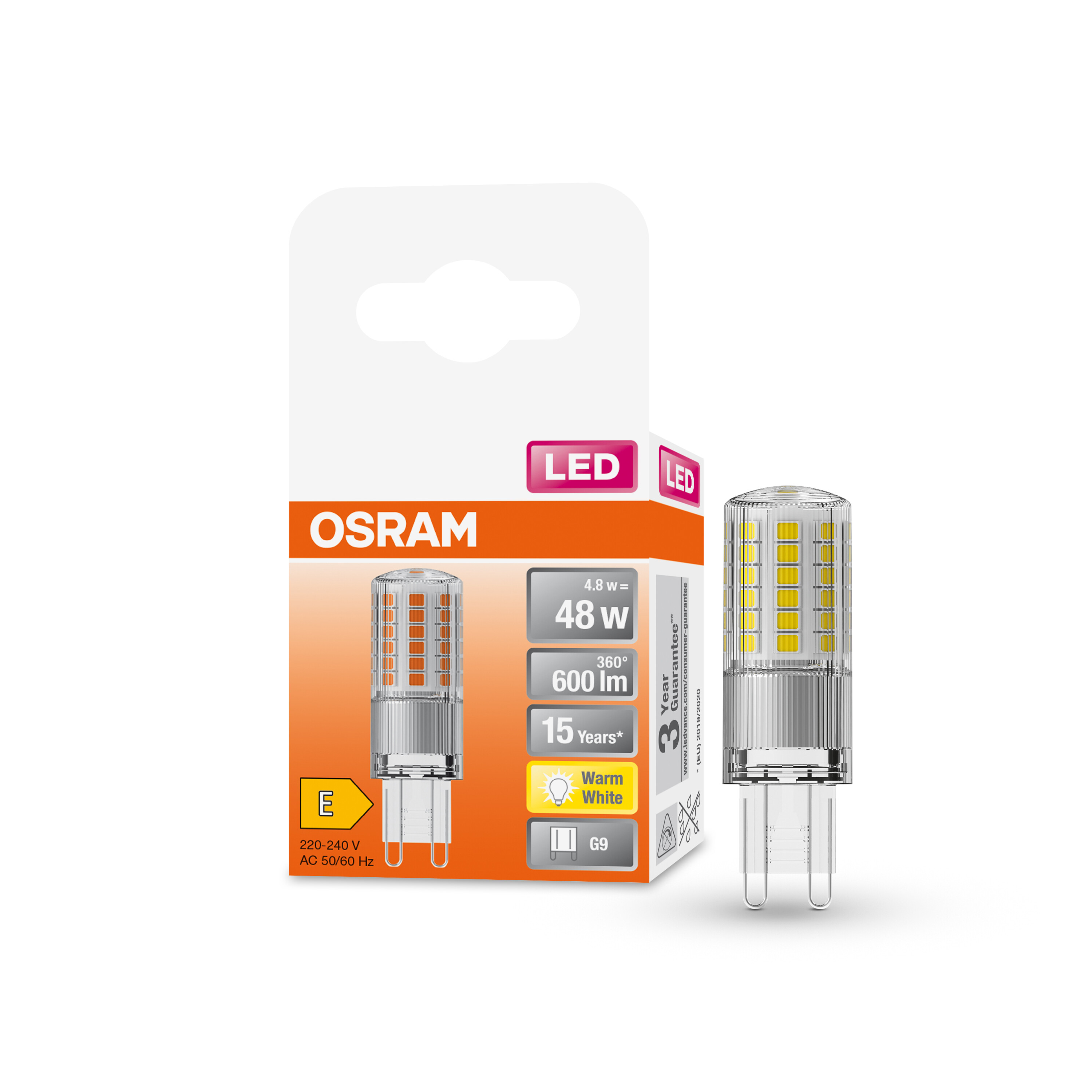 This is 40580 G9 LED Bulbs 4.8 W(48W) 2700K Warm White Pin shape manufactured by LEDVANCE. The manufacturer part number is 4058075432451. This integrates a colour temperature of 2700k. Moreover, the product has a nominal 220 → 240 v voltage rating. The product 40580, is a highly preferred choice for users. This product carries 4.8 w. The lamp base is g9. It is dimmable no . It has about 80% colour rendering . Features luminosity up to 600 lm. It includes a/an pin shape lamp . In addition, it has about 48w incandescent equivalent wattage . The tone of the colour includes warm white.
