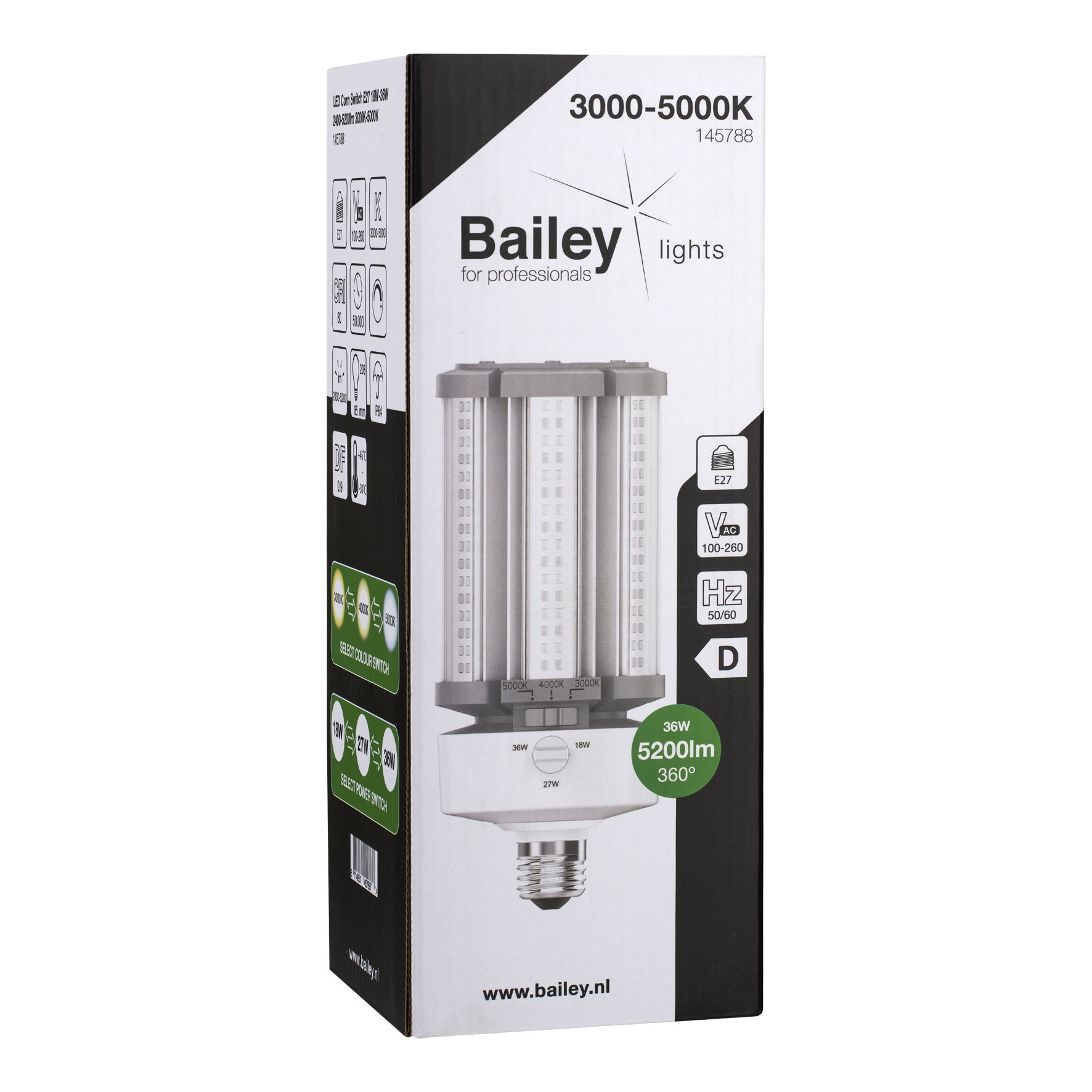 This is LED Corn Switch E27 18W-36W 3000K-5000K manufactured by Bailey Electric & Electronics bv. The manufacturer part number is 145788.