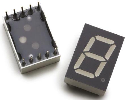 This is 7-Segment LED Display CC Red 16 mcd RH DP 13.2mm manufactured by Broadcom. The manufacturer part number is HDSP-C5A3. It has a dominant wavelength of 643 nm. It features 25ma forward current. It has a common cathode connection . In addition, it has about 7.6mm character width . It has an external depth of 6.9mm. The forward voltage is 1.85 v. It has 16 mcd of luminous intensity. It has a maximum operating temperature of +85°c. It is created with a grey colour face . The product has -40 → +85°c of operating temperature range. It has a standard 13.2mm character in height . It includes 7 segments . Features 17.6 x 12.4 x 6.9mm external caliber. It features a remarkable 7-segment display. The product is available in through hole configuration. Consists of 1 characters. Whereas, the minimum operating temperature of the product is -40°c. The LED has a classic red colours. Its decimal orientation is to the right side . While its external height is 17.6mm. The product is 12.4mm wide.