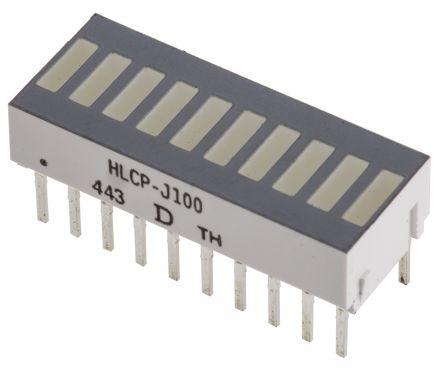 This is Light Bar Array LED Display Red 5.2 mcd manufactured by Broadcom. The manufacturer part number is HLCP-J100. Features 10.2 x 25.4 x 6.1mm external caliber. It features a remarkable light bar display. It is created with a grey colour face . The product is available in through hole configuration. It features 15ma forward current. The product has -20 → +100°c of operating temperature range. It includes 10 segments . It has an external depth of 6.1mm. It has about 37mw power dissipation . The forward voltage is 1.8 v. It has 5.2 mcd of luminous intensity. It has a dominant wavelength of 637 nm. Whereas, the minimum operating temperature of the product is -20°c. The LED has a classic red colours. While its external height is 10.2mm. The product is 25.4mm wide. It has a maximum operating temperature of +100°c.