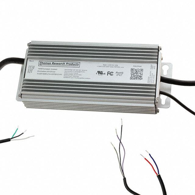 This is manufactured by Thomas Research Products. The manufacturer part number is VLED150W-214-C0700-D-HV. It is rated with ip67. It is assigned with possible HTSUS value of 8504.40.9520. The product is rohs compliant. Moreover, it has wire leads terminal style. The product features power and watts of 150 w. The maximum product's output current is 700ma. It is approved by ce, curus. The product is available in chassis mount configuration. It offers 312vac of minimum input voltage. It comes in constant current configuration. Dimming Info: analog. It is a highly efficient product with an 91% of high efficiency. Its maximum input voltage is 512vac. Topology includes ac dc converter. It is shipped in box package . The product's diameters include 7.24" l x 3.46" w x 1.71" h (184.0mm x 88.0mm x 43.5mm). Its typical moisture sensitivity level is 1 (unlimited). The splendid features of the product include otp, ovp, scp. The typical product's weight is 2.8 lbs (1.3 kg). The product vled-150w-hv, is a highly preferred choice for users. Furthermore, the output voltage is 107 ~ 214v. Additionally, the product is supplied with 1 outputs. The product is designated with the ear99 code number.