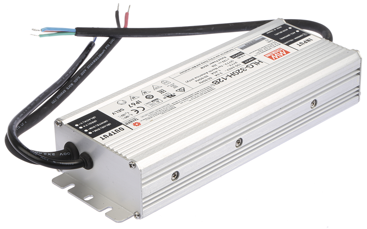 This is Constant Voltage 1-10 V PWM Resistance LED Driver 264W 12V 22A manufactured by Mean Well. The manufacturer part number is HLG-320H-12B. Additionally, it has a/an led driver type LED driver . Additionally, its diming operation is 1-10 v pwm resistance . It carries 22a output current. It is IP rated with ip67. Moreover, the product has a nominal 127 → 431 v dc, 90 → 305 v ac voltage rating. It has ac, dc input voltage. The product offers a maximum 264w output power . It is dimmable yes . Features a 12v output voltage. It allows to operate using constant voltage. Its input voltage is 127 → 431 v dc, 90 → 305 v ac.