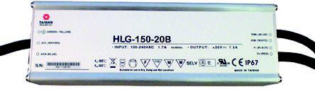 This is RS Constant Voltage 1 to 10 V Potentiometer LED Driver 150W 15V 10A manufactured by Mean Well. The manufacturer part number is HLG-150-15B. Additionally, the product is supplied with 1 outputs. Additionally, its diming operation is potentiometer, 1 to 10 v . It carries 10a output current. It is IP rated with ip67. Moreover, the product has a nominal 90 264 v ac, 127 370 v dc voltage rating. It has ac, dc input voltage. The product offers a maximum 150w output power . Its input voltage is 90 264 v ac, 127 370 v dc. Features a 15v output voltage. It allows to operate using constant voltage.