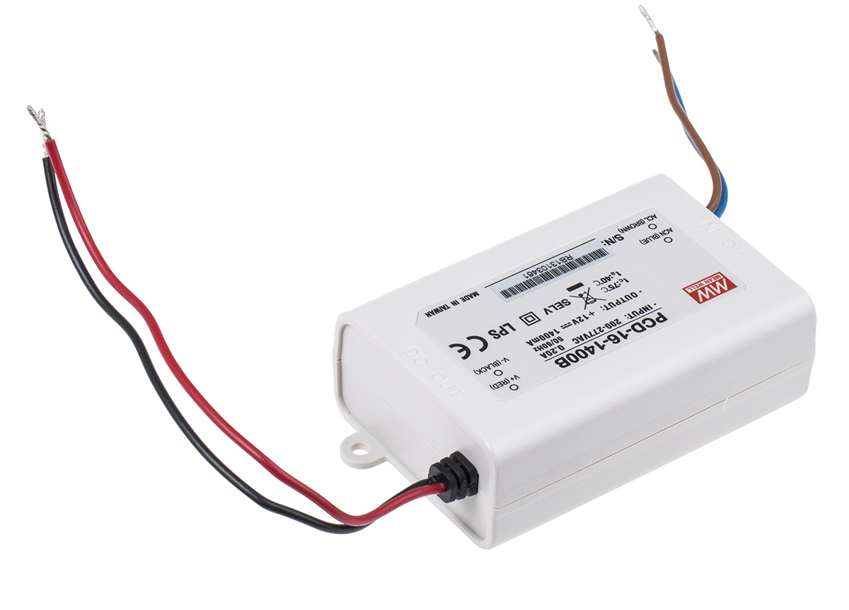 This is Constant Current Triac LED Driver 16.8W 8 → 12V 1.4A manufactured by Mean Well. The manufacturer part number is PCD-16-1400B. Additionally, it has a/an led driver type LED driver . Additionally, its diming operation is triac . It carries 1.4a output current. It is IP rated with ip42. Moreover, the product has a nominal 180 → 295v ac voltage rating. It has ac input voltage. The product offers a maximum 16.8w output power . It is dimmable yes . Features a 8 → 12v output voltage. It allows to operate using constant current. Its input voltage is 180 → 295 v ac.