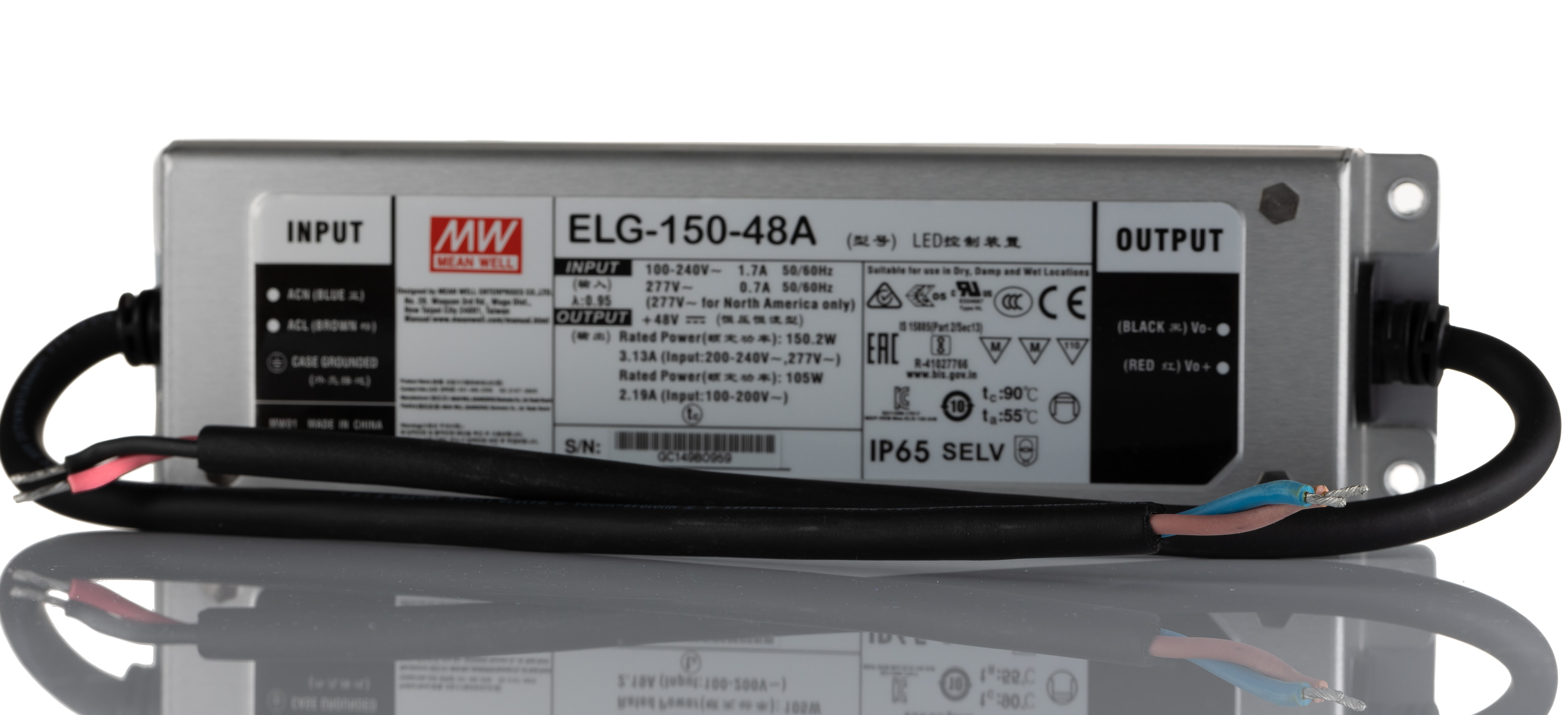 This is Constant Current / Constant Voltage Potentiometer LED Driver 150W 48V 3A ELG-150 Series manufactured by Mean Well. The manufacturer part number is ELG-150-48A. Additionally, the product is supplied with 1 outputs. Additionally, it has a/an led driver type LED driver . Additionally, its diming operation is potentiometer . The product has a current rating of 900ma. The product complies with all safety standards, such as cb, ce:ccc, culus recognized, en61347-1, en61347-2-13, en62384, enec, pfc, ul8750. It carries 3a output current. It is IP rated with ip65. The product elg-150, is a highly preferred choice for users. Moreover, the product has a nominal 180 → 305 v ac, 254 → 431 v dc voltage rating. The product offers a maximum 150w output power . It has ac, dc input voltage. Its primary type is ac-dc, dc-dc . It is dimmable yes . Features a 48v output voltage. Moreover, the product allow the output of 48 v dc @ 3.13 a. It allows to operate using constant current / constant voltage. The product is available in encapsulated configuration. Its input voltage is 180 → 305 v ac, 254 → 431 v dc.