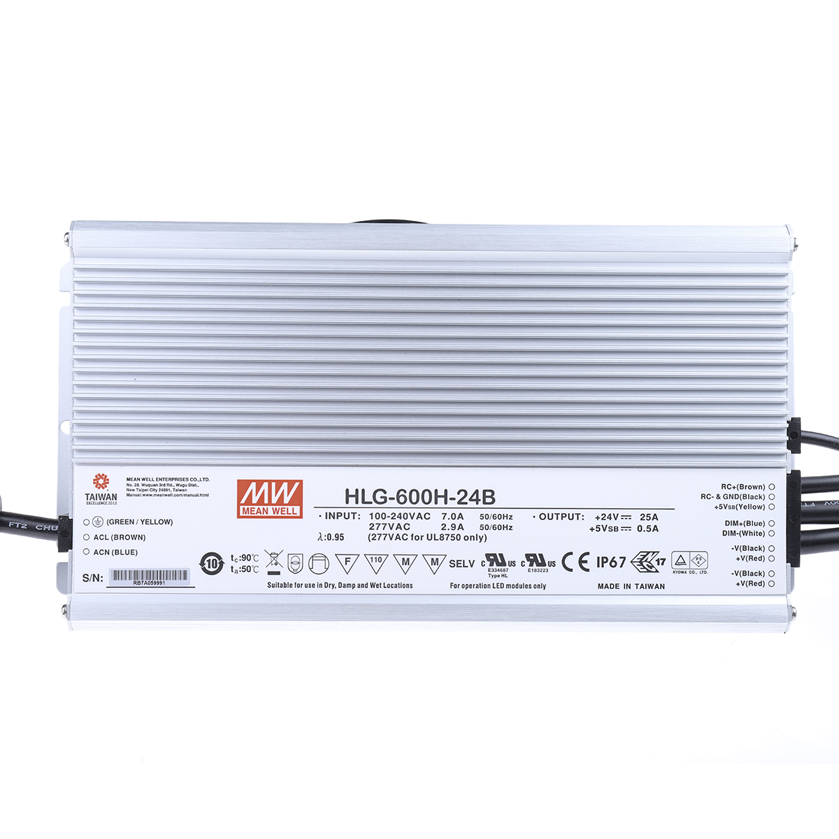 This is Constant Voltage Dimmable LED Driver 600W 12 → 24V 25A manufactured by Mean Well. The manufacturer part number is HLG-600H-24B. Additionally, it has a/an led driver type LED driver . Additionally, its diming operation is 1-10 v pwm resistance . It carries 25a output current. It is IP rated with ip67. Moreover, the product has a nominal 127 → 431 v dc, 90 → 305 v ac voltage rating. It has ac, dc input voltage. The product offers a maximum 600w output power . It is dimmable yes . Features a 12 → 24v output voltage. It allows to operate using constant voltage. Its input voltage is 127 → 431 v dc, 90 → 305 v ac.