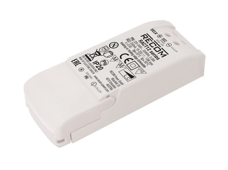 This is Constant Current Triac LED Driver 12W 12 → 24V 500mA RACT12 Series manufactured by Recom. The manufacturer part number is RACT12-500. Additionally, the product is supplied with 1 outputs. Additionally, it has a/an led driver type LED driver . Additionally, its diming operation is triac . The product has a current rating of 0 → 500ma. The product complies with all safety standards, such as ce. It carries 500ma output current. It is IP rated with ip20. The product ract12, is a highly preferred choice for users. Moreover, the product has a nominal 264v ac voltage rating. The product offers a maximum 12w output power . It has ac input voltage. It has about 1w power dissipation . Its primary type is ac-dc . It is dimmable yes . Features a 12 → 24v dc output voltage. Moreover, the product allow the output of 24vdc@0.5a. It allows to operate using constant current. The product is available in enclosed configuration. Its input voltage is 198 → 264 v ac.