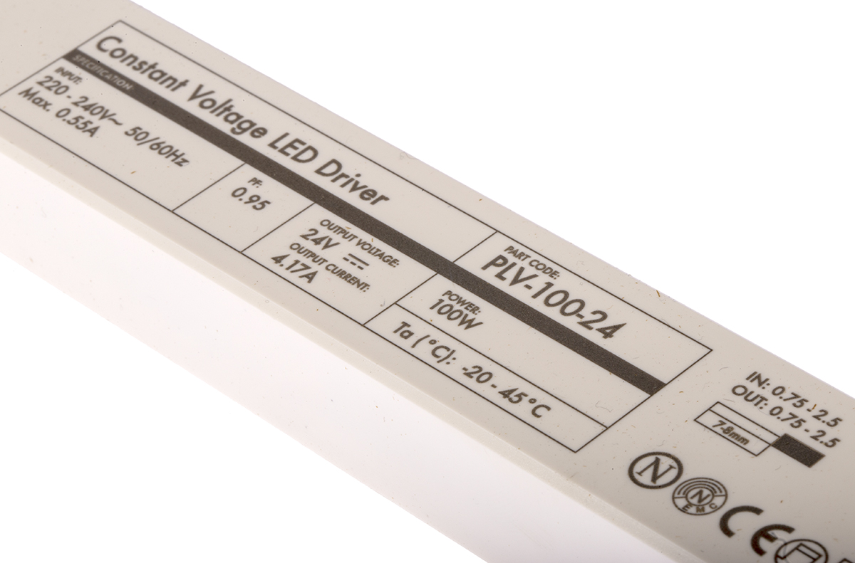 This is 100W 24V Low Profile LED driver manufactured by PowerLED. The manufacturer part number is PLV-100-24. Additionally, the product is supplied with 1 outputs. Additionally, it has a/an led driver type LED driver . The product has a current rating of 550ma. It carries 4.17a output current. It is IP rated with ip20. The product plv-100, is a highly preferred choice for users. Moreover, the product has a nominal 220 → 240v ac voltage rating. The product offers a maximum 100w output power . It has ac input voltage. Its primary type is ac-dc . Its input voltage is 220 → 240 v ac. Features a 24v output voltage. Moreover, the product allow the output of 24 v @ 4.17 a. It allows to operate using constant voltage.
