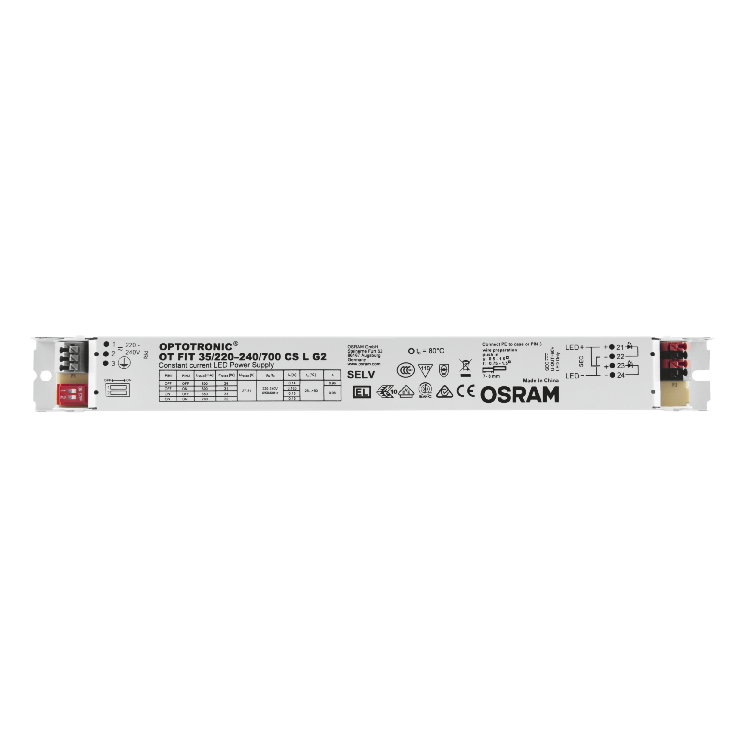 This is LED DriverOT FIT 35/220-240/700 CS L G2 manufactured by Osram. The manufacturer part number is 4052899522534. Additionally, the product is supplied with 1 outputs. Additionally, it has a/an led driver type LED driver . It carries 500 ma, 600 ma, 650 ma, 700 ma output current. It is IP rated with ip20. The product optotronic, is a highly preferred choice for users. Moreover, the product has a nominal 220 → 240v voltage rating. The product offers a maximum 35.7w output power . It has ac, dc input voltage. Its primary type is ac, dc-dc . It is dimmable no . Features a 27 → 51v output voltage. It allows to operate using constant current. Its input voltage is 176 → 276 v dc, 198 → 264 v ac.
