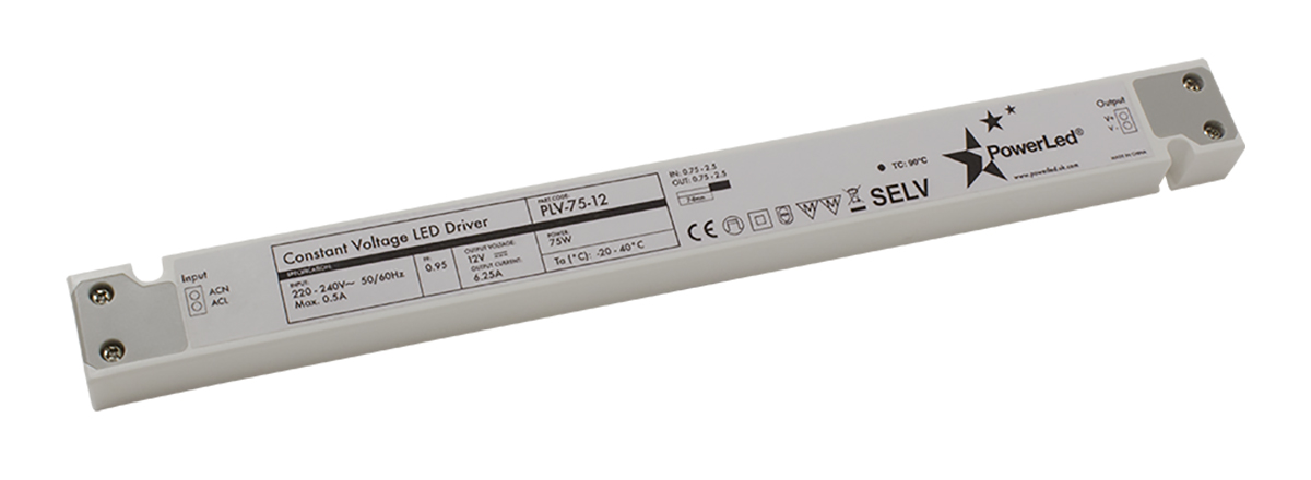 This is 75W 24V Low Profile LED driver manufactured by PowerLED. The manufacturer part number is PLV-75-24. Additionally, the product is supplied with 1 outputs. Additionally, it has a/an led driver type LED driver . The product has a current rating of 450ma. It carries 3.12a output current. It is IP rated with ip20. The product plv-75, is a highly preferred choice for users. Moreover, the product has a nominal 220 → 240v ac voltage rating. The product offers a maximum 75w output power . It has ac input voltage. Its primary type is ac-dc . Its input voltage is 220 → 240 v ac. Features a 24v output voltage. Moreover, the product allow the output of 24 v @ 3.12 a. It allows to operate using constant voltage.